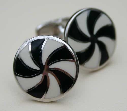 Maak een afspraakPrachtige ronde manchetknopen met een zwart/wit patroon, perfect om te dragen bij uw hemd met dubbele manchet. Onder bijvoorbeeld uw smoking.