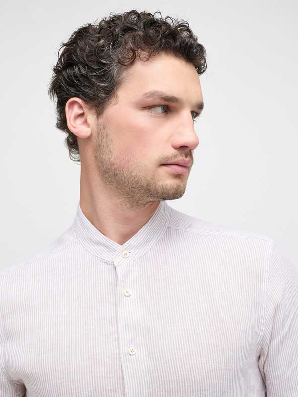 Overhemd Eterna Linnen Kraagloos Slim Fit