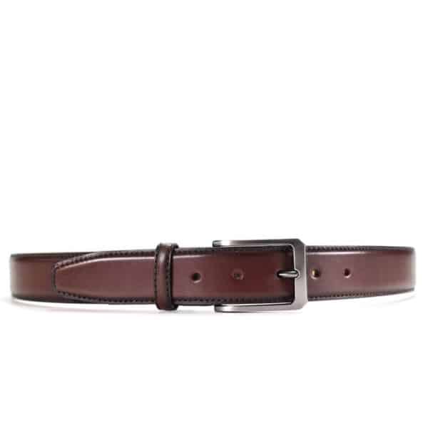 Riem Melik Donker Bruin Leer. Al onze riemen zijn vervaardigd van hoogwaardig kalfsleer, suède of nubuck en sluiten perfect aan bij onze schoenen.