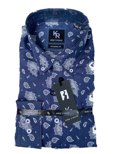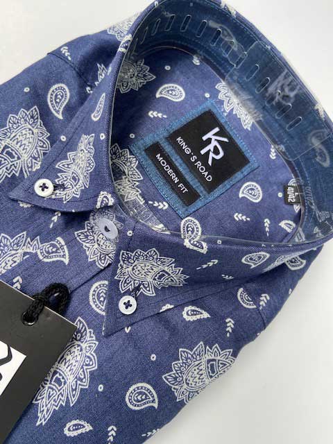 Shirt King’s Road, Blauw Pailsey Linnen