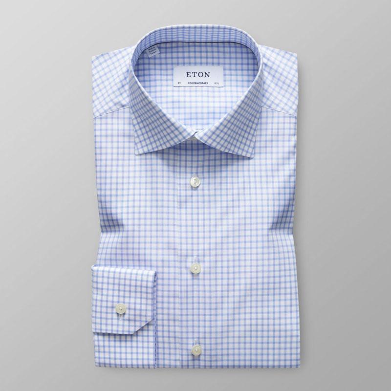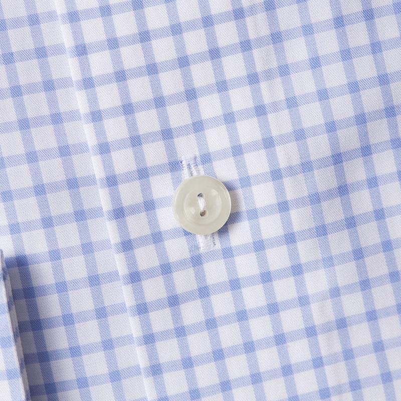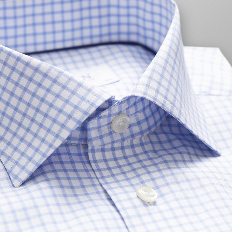 This classic sky blue checked shirt stands out with its high-performance twill fabric that lets you stay crisp all day. The natural stretch fabric provides the wearer with a soft feel and impeccable comfort. Match it with our navy & blue striped tie for a sharp business look.
