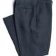 De pantalon heeft een satijnen galon aan de zijkant en een flatfront model.