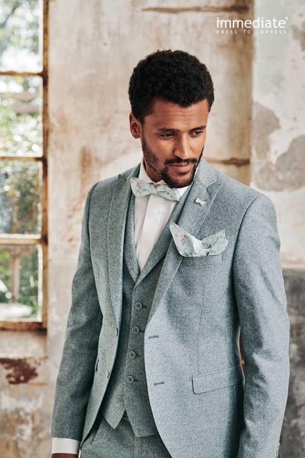 Prachtig mintgroen trouwpak met bijpassend vestje in dezelfde kleur uit de nieuwe collectie van Immediate. Immediate, een prachtig trouwpakken merk met Italiaanse designs van Nederlandse bodem. Door gebruik van enorm luxe stoffen en uitgekiende designs is een collectie ontwikkeld die werkelijk ongeevenaard is. Wij nodigen u uit om vrijblijvend eens een afspraak te maken of loop eens gewoon bij ons binnen om deze prachtige collectie te zien!