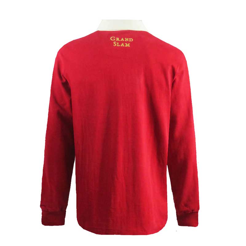The Wales Rugby Shirt 1976 Grand Slam. Manufactured from satin touch 100% cotton, the jersey features a detailed embroider Crest. Other features include a herringbone finish on the vents and tape on the neck opening. Also, we offer our vintage Wales Rugby collection.