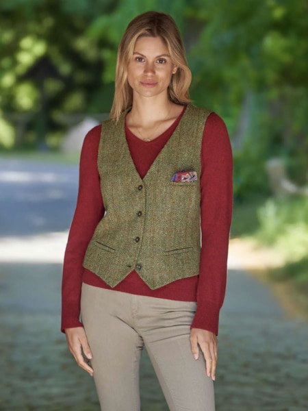 Het vrouwelijke Harris Tweed “Lea” vest combineert traditie en innovatie op stijlvolle wijze. De fijne scheerwol – handgeweven in de Schotse Buiten-Hebriden – is veel meer dan alleen een stof: het staat voor meer dan 100 jaar traditie, ongeëvenaarde kwaliteit, uitzonderlijk duurzame productie en is een uiting van de Britse cultuurgeschiedenis.