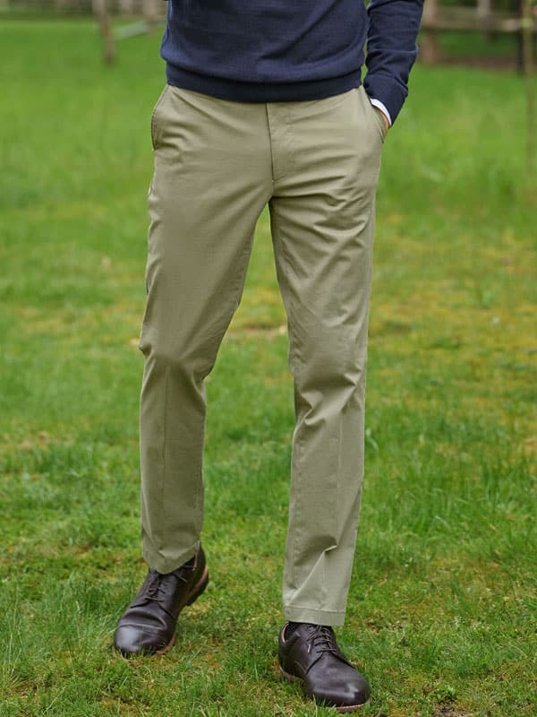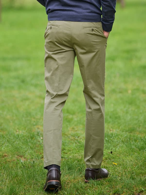 Klassieke heren chino ‘Mr. ”Jones” gemaakt van eersteklas Pima katoen als ideale zomerbroek op warme dagen. Pima-katoen komt uit Peru en is dankzij de ideale groeiomstandigheden en de bijzonder lange vezels de beste katoenkwaliteit ter wereld. Het wordt vooral gewaardeerd om zijn uitzonderlijke zachtheid, schitterende glans en hoge duurzaamheid. Dankzij een beetje stretch zijn deze broeken vormvast, kreukvrij en comfortabel. Het heeft een rechte pijp, Franse zakken, twee achterzakken met knoop, riemlussen en een horlogezakje in een normale pasvorm. Dit eigentijdse, slimme en comfortabele model is een perfecte allrounder voor elke gelegenheid en mag in geen enkele garderobe ontbreken.