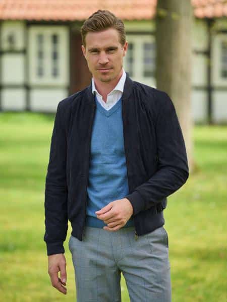De fluweelzachte leren “Winston III” in klassieke blousonstijl presenteert zich zowel modern als elegant. Gemaakt van het fijnste geitensuède, is dit natuurproduct winddicht, ademend en duurzaam, en voelt het heerlijk licht aan.
