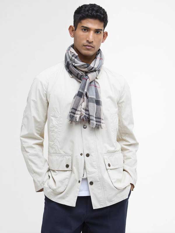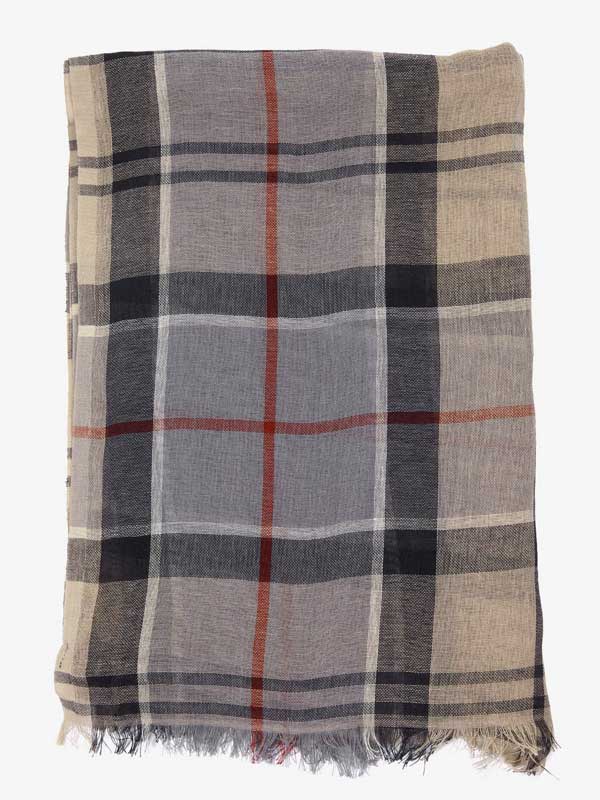Welton Tartan Scarf Stone Dress Tartan. Deze klassieke sjaal is geweven van een lichte en luchtige katoen-linnenmix en is perfect voor de zomerse zonsondergang.