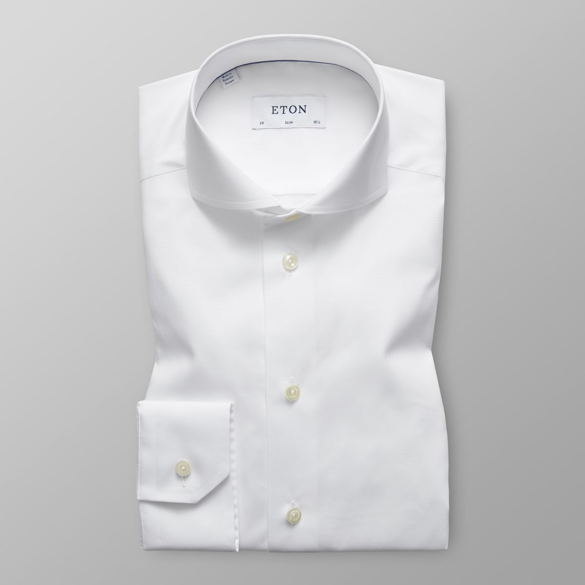 Cut from our crisp poplin fabric this Slim shirt adds a versatile piece to your wardrobe. Wear it with trim suiting for a contemporary and clean outfit.