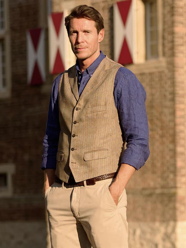 Heren zomervest “Wales” – een verfijnd, casual zijden vest voor stijlvolle zomerlooks met karakter.