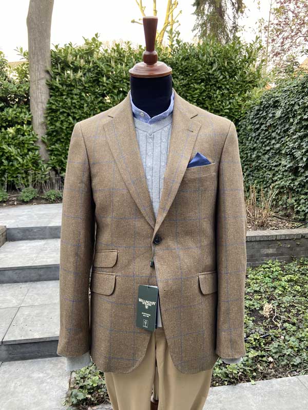 • Zijden Jasje London In Herringbone With Blue Overcheck